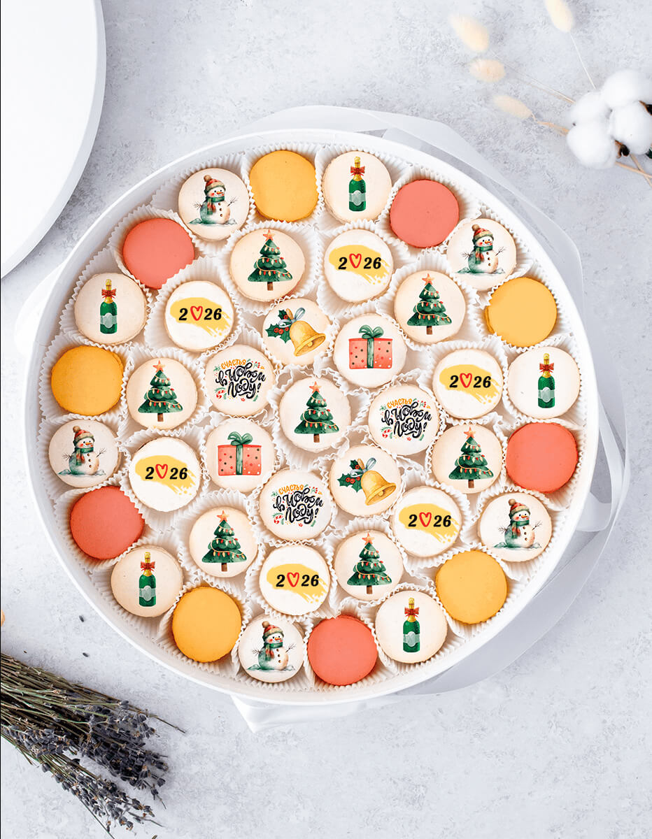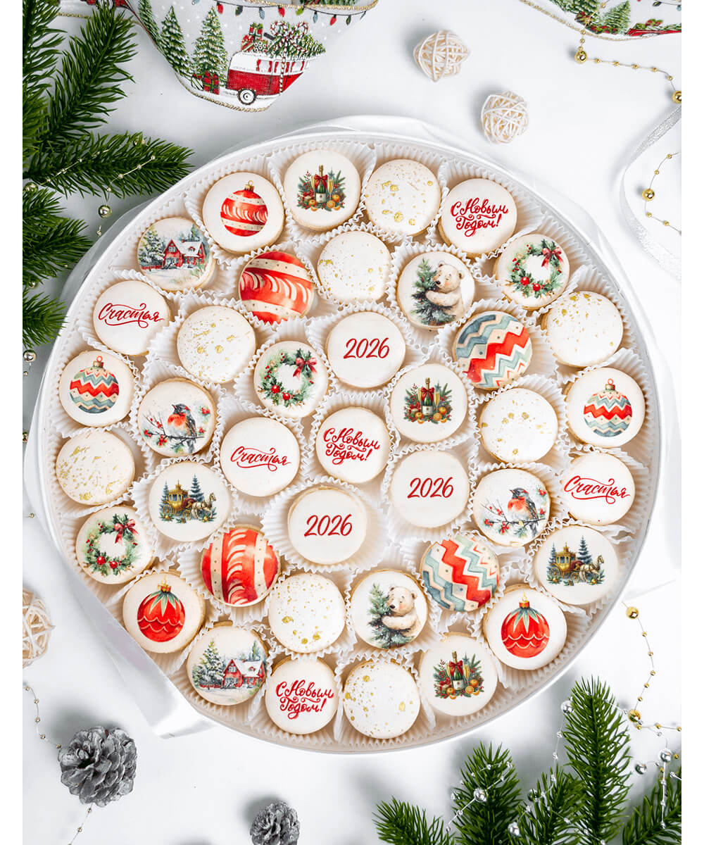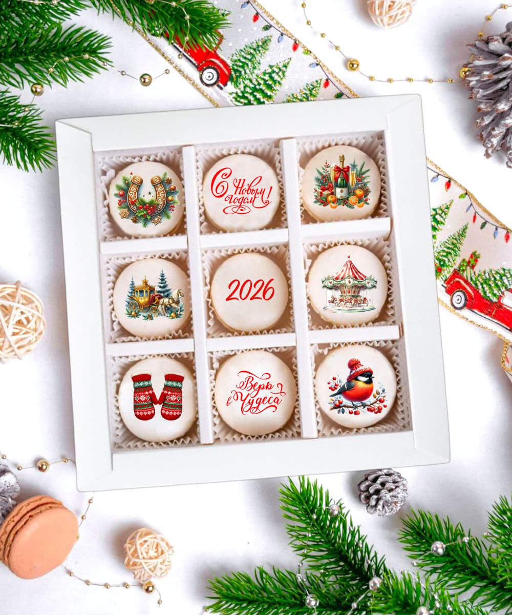 22 макаронс, вкусы: фисташка, смородина, ванильный пломбир, шоколад, тропический манго-маракуйя