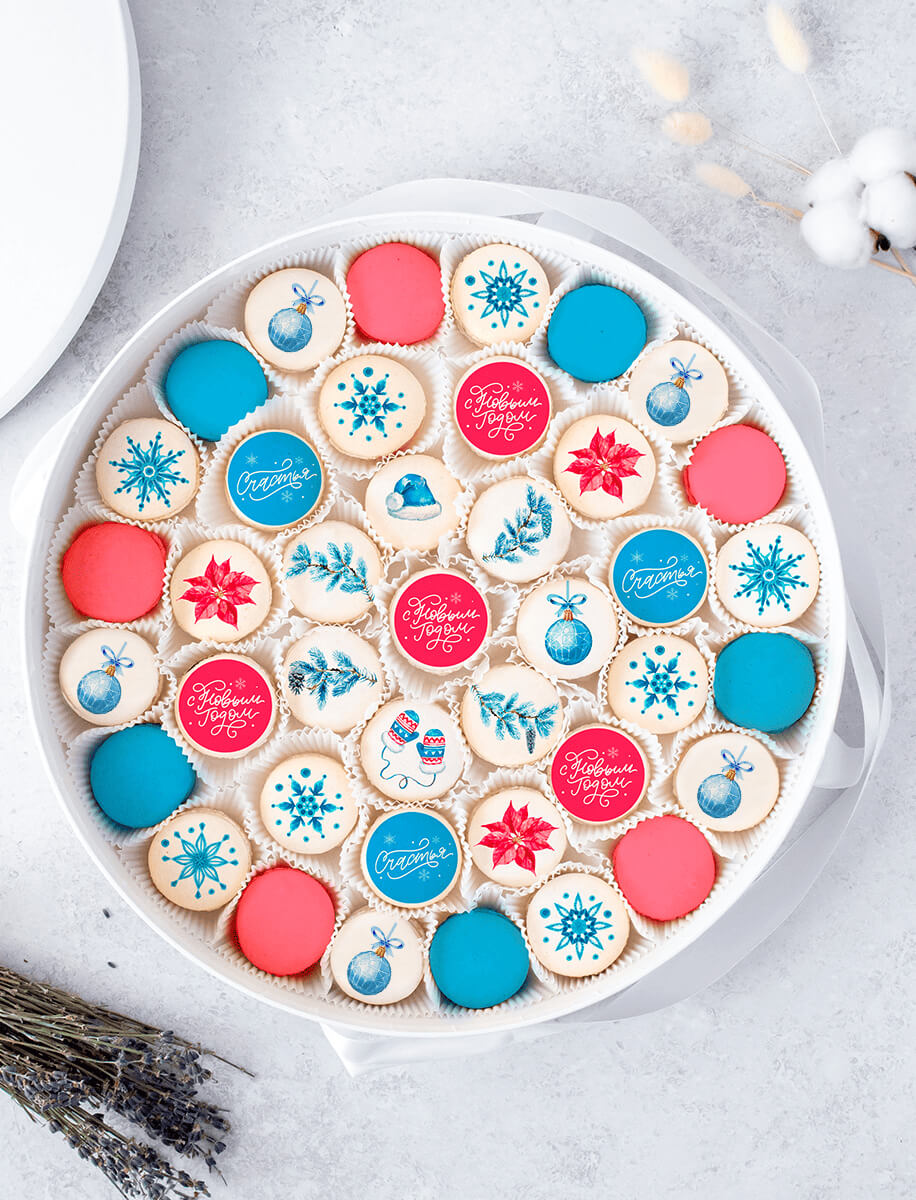 40 макаронс в коробке. Вкусы: шоколад, ванильный пломбир, вишня,ананас